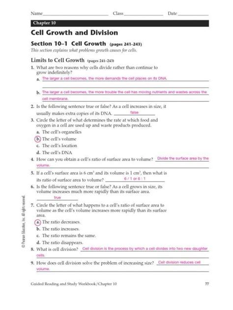 Download Chapter 10 Cell Growth And Division Workbook Answers Doc